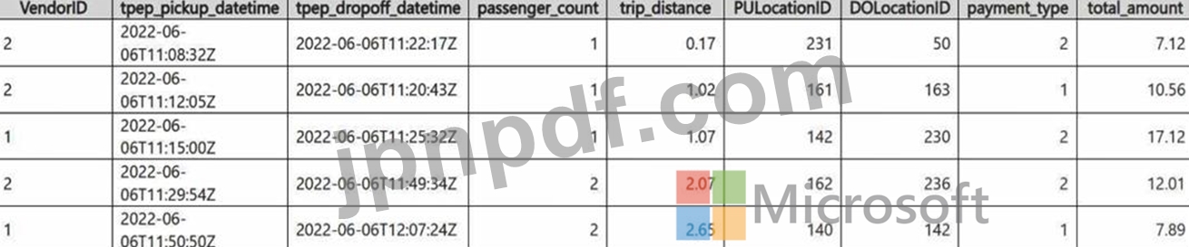 KQLデータベースを含むFabricイベントハウスがあります。このデータベースにはTaxiDataというテーブルが含まれています。