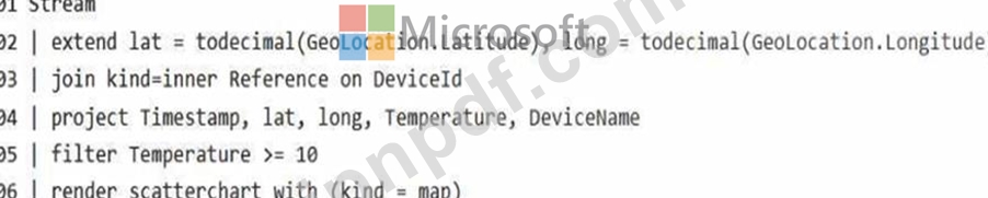 StreamとReferenceという2つのテーブルを含むKQLデータベースがあります。Streamには、次の形式のストリーミングデータが含まれています。
