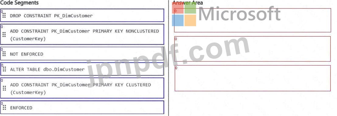 どの 3 つのコード セグメントを順番に実行する必要がありますか? 回答するには、コード セグメントのリストから適切なコード セグメントを回答領域に移動し、正しい順序に並べます。