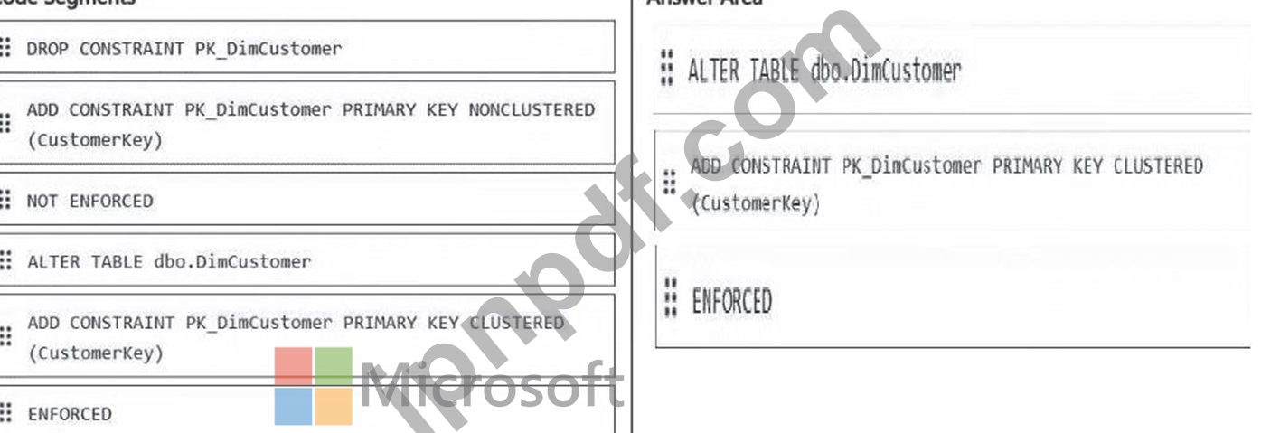 Customerkey 列を DimCustomer テーブルの主キーとして設定する必要があります。