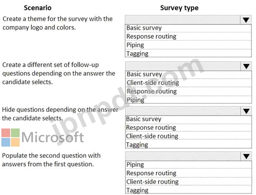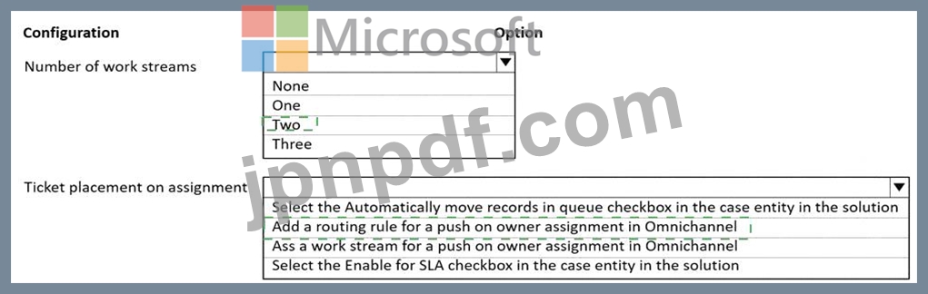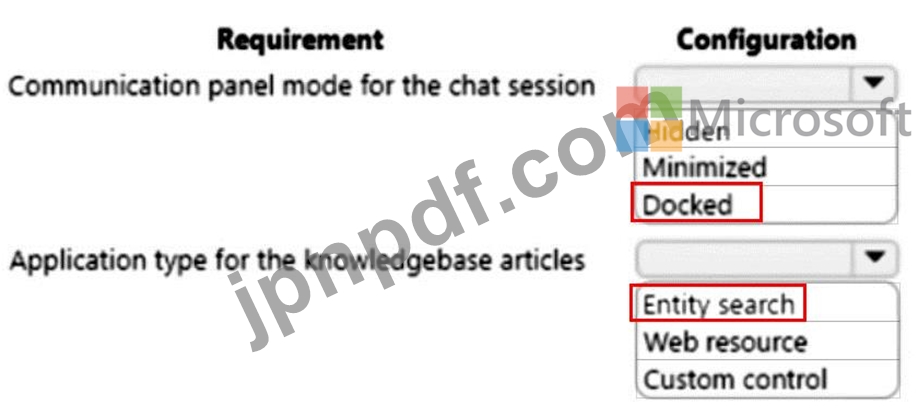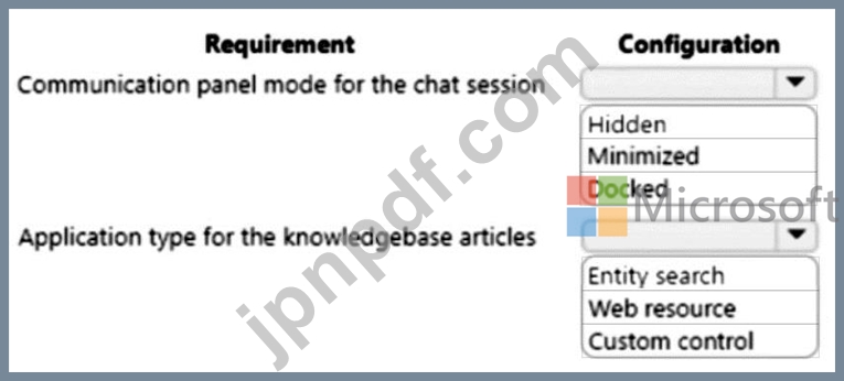 各要件にはどの構成を使用する必要がありますか? 回答するには、回答領域で適切なオプションを選択してください。