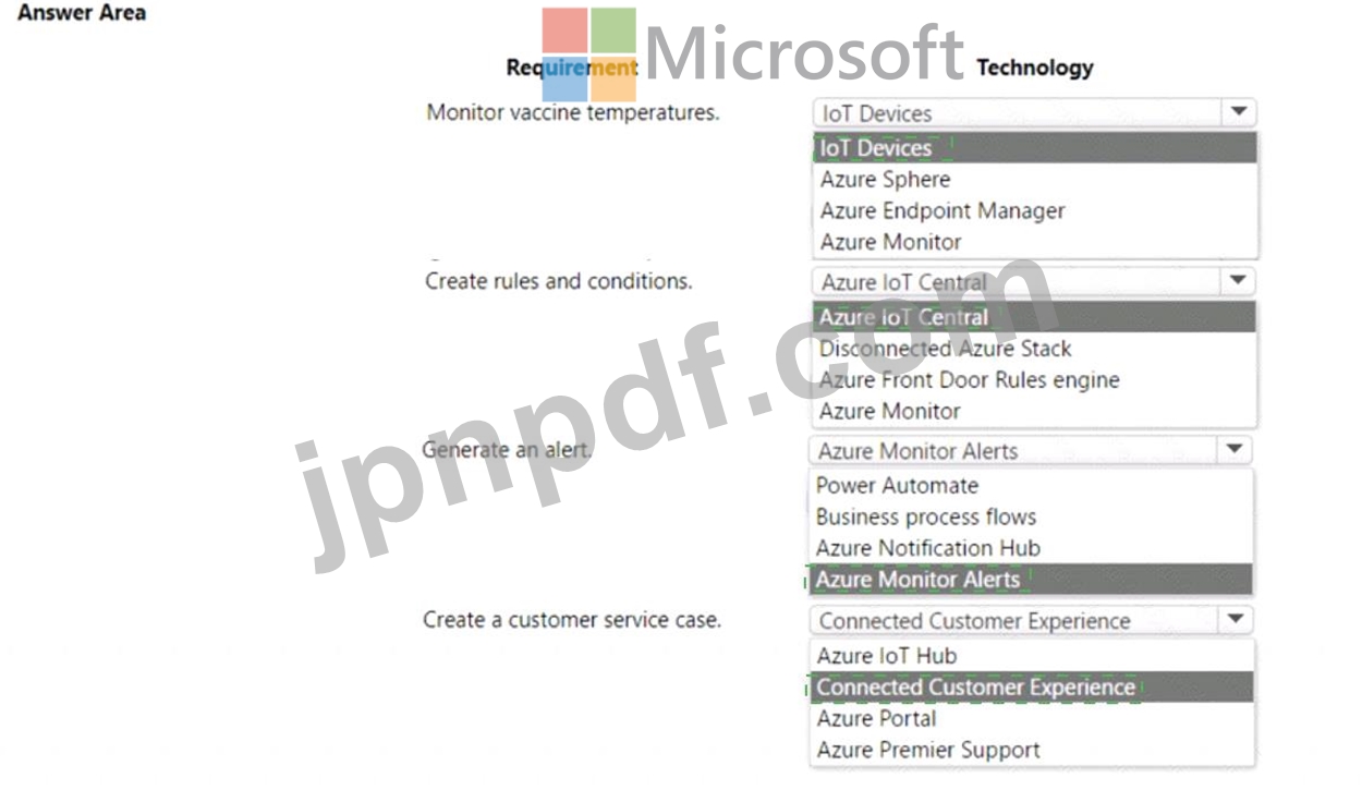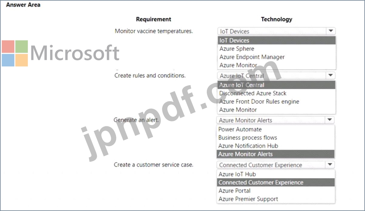 どのテクノロジーを使用すべきでしょうか? 回答するには、回答エリアで適切なオプションを選択してください。