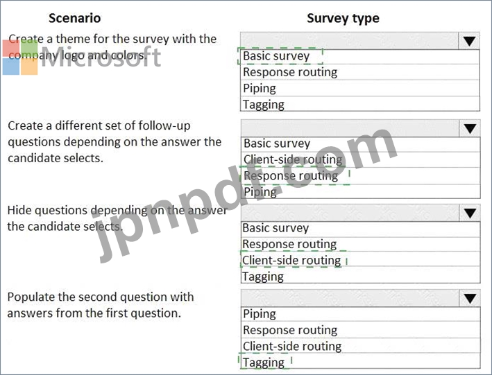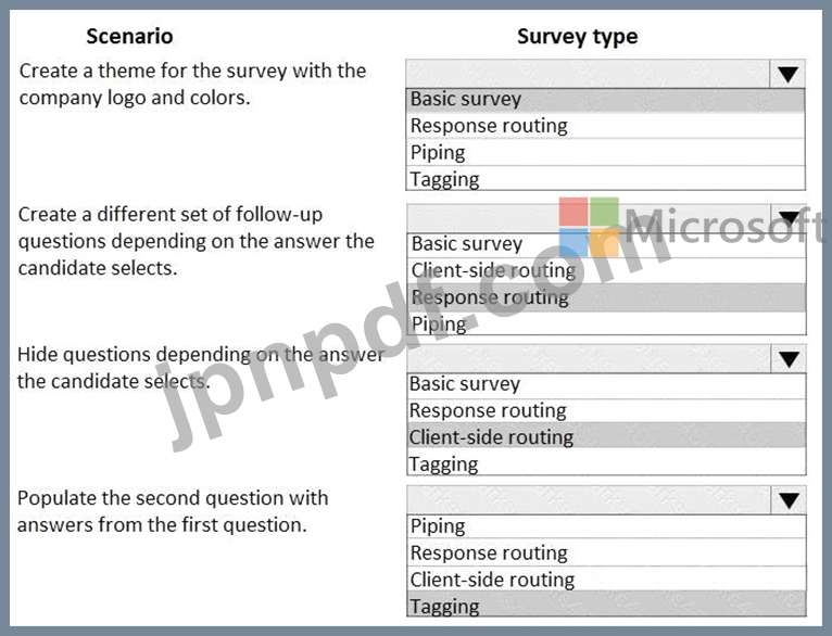 どの調査機能を使用すればよいですか? 回答するには、回答領域のダイアログ ボックスで適切な調査タイプを選択します。