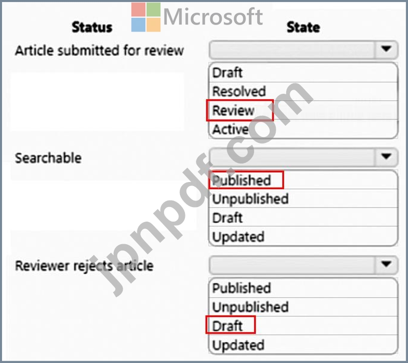 記事の状態はどうなっていますか? 回答するには、回答エリアで適切なオプションを選択してください。