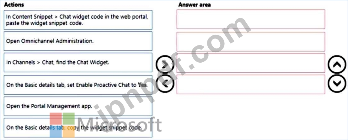 どの 4 つのアクションを順番に実行する必要がありますか? 回答するには、適切なアクションをアクション リストから回答領域に移動し、正しい順序に並べます。