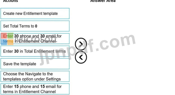 どの 4 つのアクションを順番に実行する必要がありますか? 回答するには、適切なアクションをアクション リストから回答領域に移動し、正しい順序に並べます。