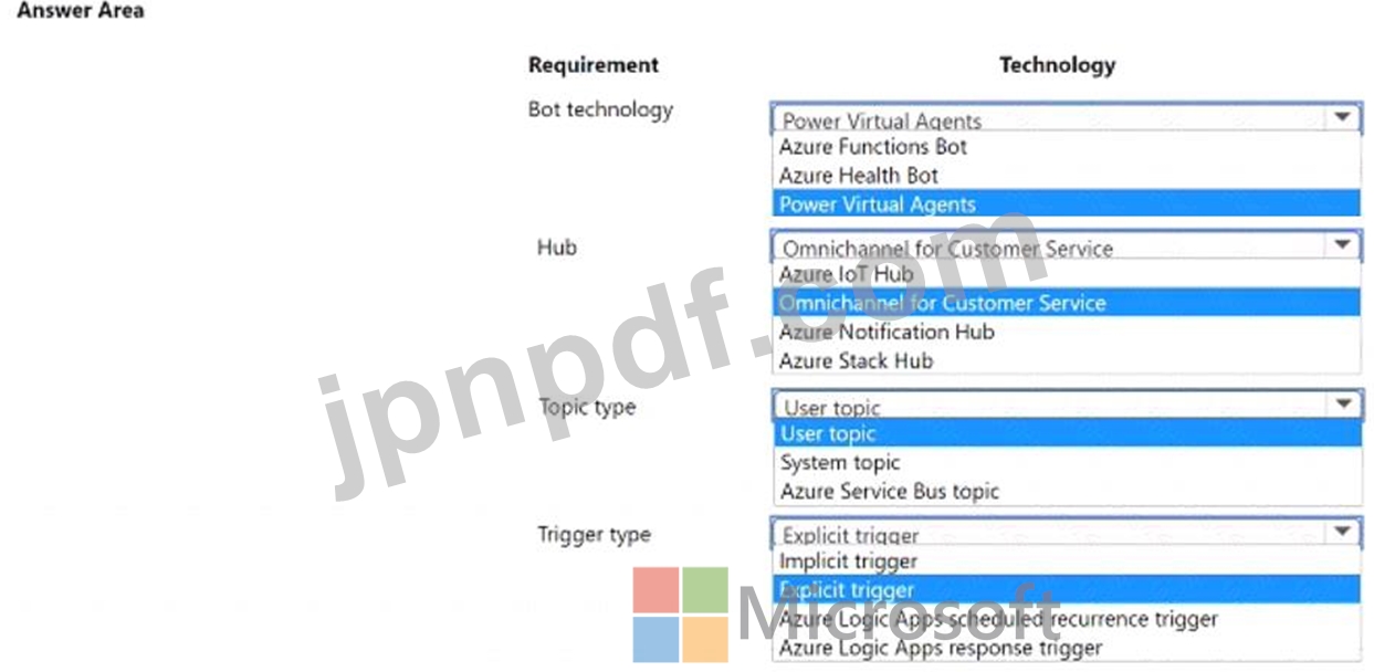 どのテクノロジーを使用すべきでしょうか? 回答するには、回答エリアで適切なオプションを選択してください。