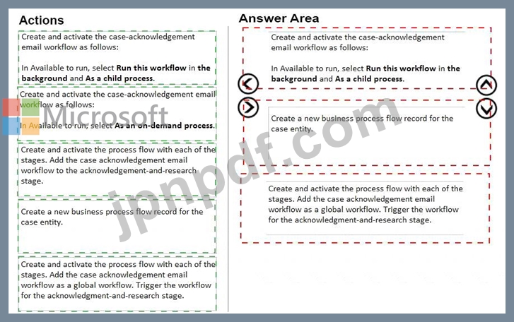 順番に実行する必要がある 3 つのアクションはどれですか。回答するには、適切なアクションをアクション リストから回答領域に移動し、正しい順序に並べます。