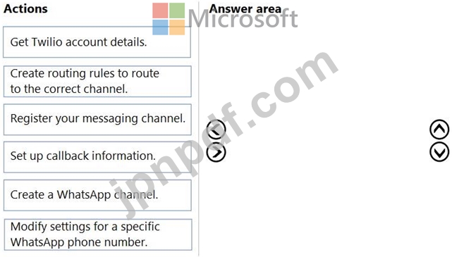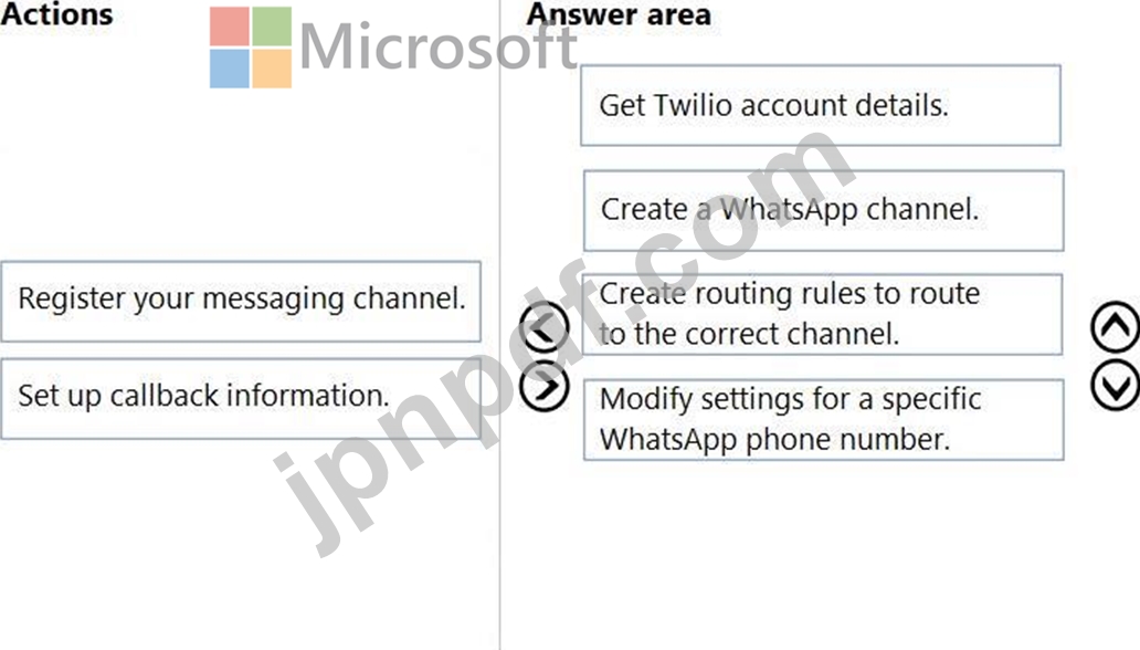 どの 4 つのアクションを順番に実行する必要がありますか? 回答するには、適切なアクションをアクション リストから回答領域に移動し、正しい順序に並べます。