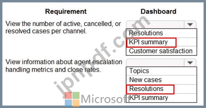 どのダッシュボードをお勧めしますか? 回答するには、回答エリアで適切なオプションを選択してください。