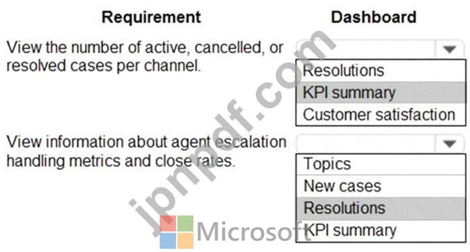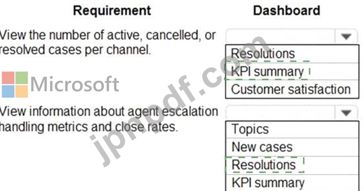 どのダッシュボードをお勧めしますか? 回答するには、回答エリアで適切なオプションを選択してください。