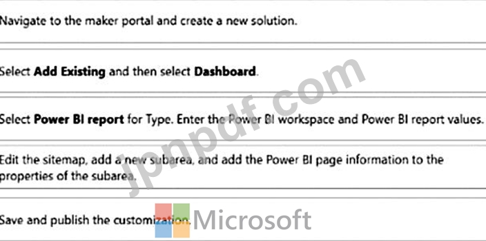 順番に実行する必要がある 5 つのアクションはどれですか。回答するには、適切なアクションをアクション リストから回答領域に移動し、正しい順序に並べます。