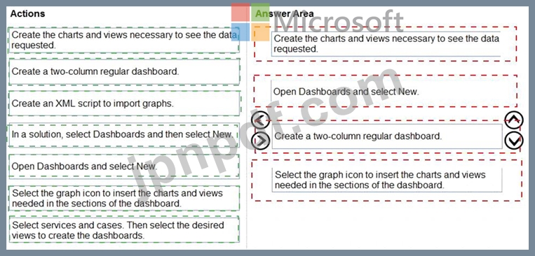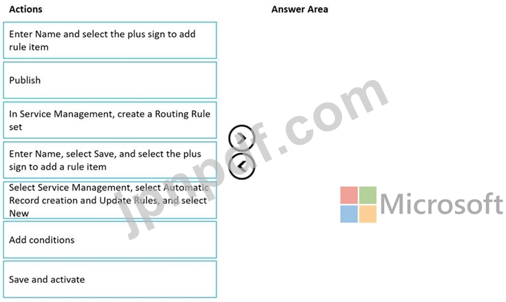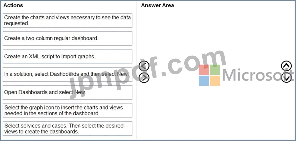 どの 4 つのアクションを順番に実行する必要がありますか? 回答するには、適切なアクションをアクション リストから回答領域に移動し、正しい順序に並べます。