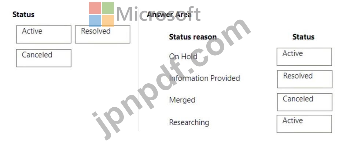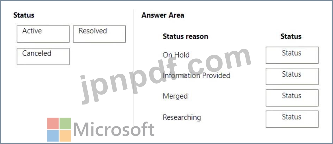 各ステータス理由にはどのステータスが当てはまりますか? 答えるには、適切なステータスを正しいステータス理由にドラッグしてください。各ステータスは、1回、複数回、または全く使用されない場合があります。コンテンツを表示するには、ペイン間の分割バーをドラッグするか、スクロールする必要がある場合があります。