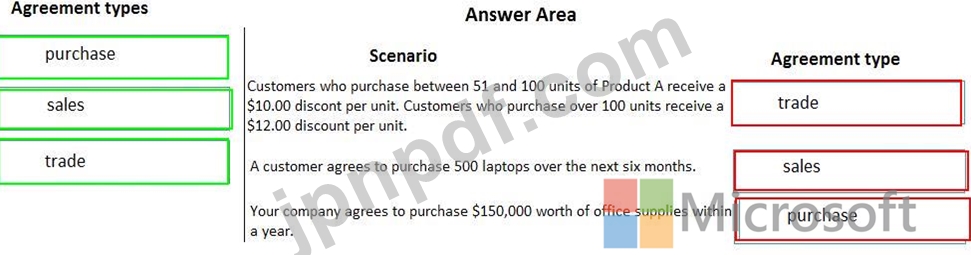 どの契約タイプを使用する必要がありますか?回答するには、適切な契約タイプを適切なシナリオにドラッグします。各契約タイプは、1回使用することも、複数回使用することも、まったく使用しないこともできます。コンテンツを表示するには、ペイン間で分割バーをドラッグするか、スクロールする必要がある場合があります。