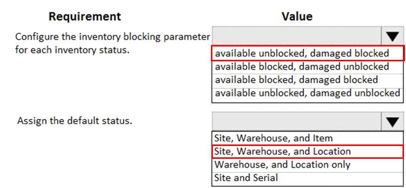 どの値を使用する必要がありますか? 回答するには、回答領域で適切なオプションを選択してください。