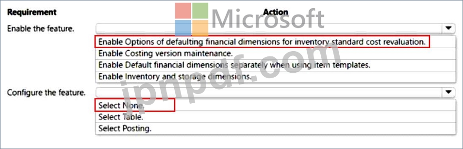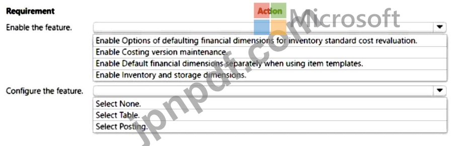 ある企業はDynamics 365 Supply Chain Managementを使用しています。この企業は事業単位の財務ディメンションを使用しています。このディメンションは品目に必須であり、取引に転記されます。