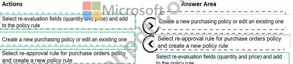 順番に実行する必要がある 3 つのアクションはどれですか。回答するには、適切なアクションをアクション リストから回答領域に移動し、正しい順序に並べます。