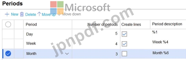 期間テンプレートの設定は次の図に示されています。「方向」フィールドの値を「後向き」に設定します。