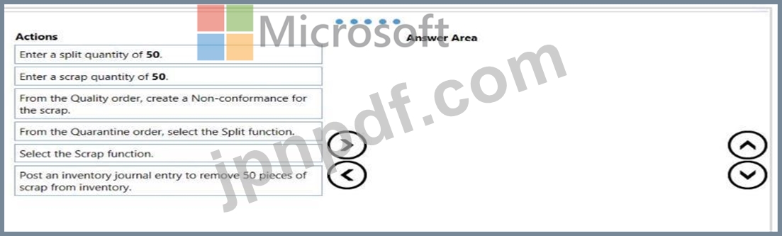 どの順序でアクションを実行すればよいですか? 回答するには、すべてのアクションをアクション リストから回答領域に移動し、正しい順序に並べます。