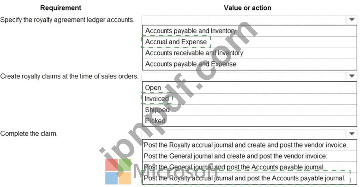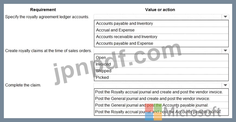 ロイヤルティ契約はどのように設定すればよいですか? 回答するには、回答エリアで適切なオプションを選択してください。