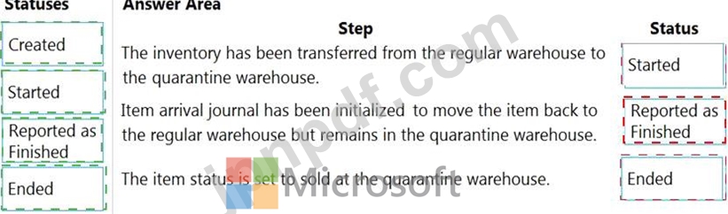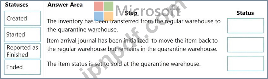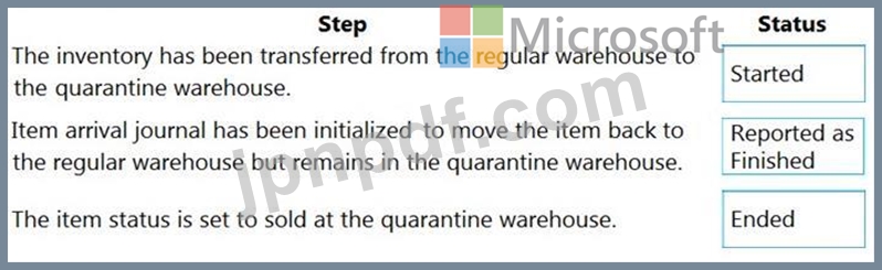 商品の所在地に基づいて、注文のステータスはどうなりますか? 回答するには、適切なステータスを正しいステップにドラッグしてください。各ステータスは、1回、複数回、または全く使用されない場合があります。コンテンツを表示するには、ペイン間の分割バーをドラッグするか、スクロールする必要がある場合があります。