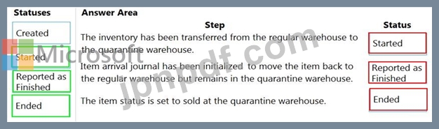 商品の所在地に基づいて、注文のステータスはどうなりますか? 回答するには、適切なステータスを正しいステップにドラッグしてください。各ステータスは、1回、複数回、または全く使用されない場合があります。コンテンツを表示するには、ペイン間の分割バーをドラッグするか、スクロールする必要がある場合があります。