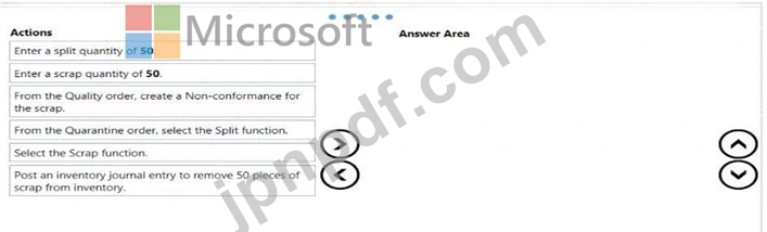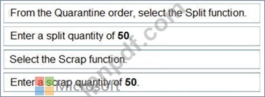 どの 4 つのアクションを順番に実行する必要がありますか? 回答するには、適切なアクションをアクション リストから回答領域に移動し、正しい順序に並べます。