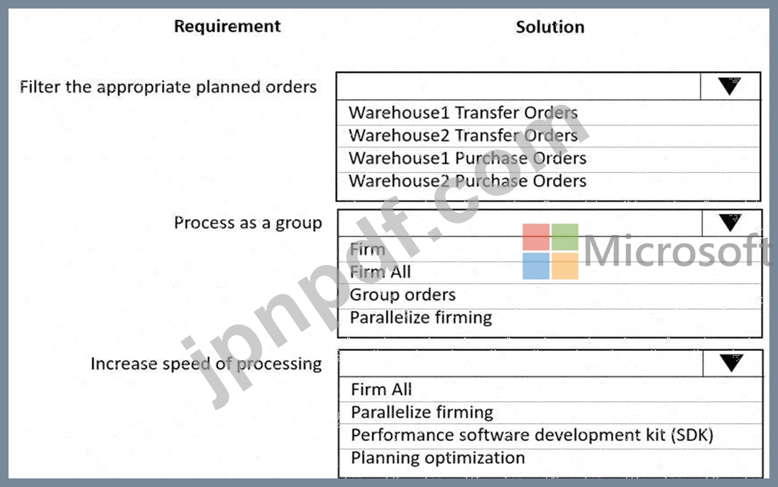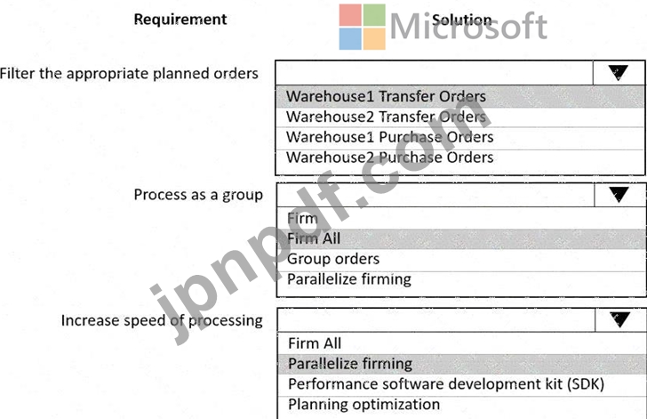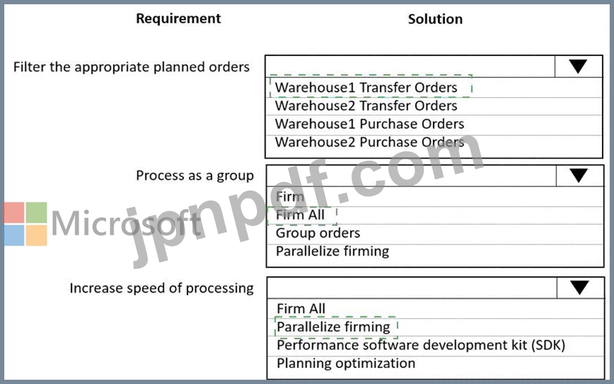 ある会社ではDynamics 365 Supply Chain Managementを使用しています。倉庫は2つあり、すべての在庫は倉庫1で購入され、補充ルールに基づいて倉庫2に転送されます。