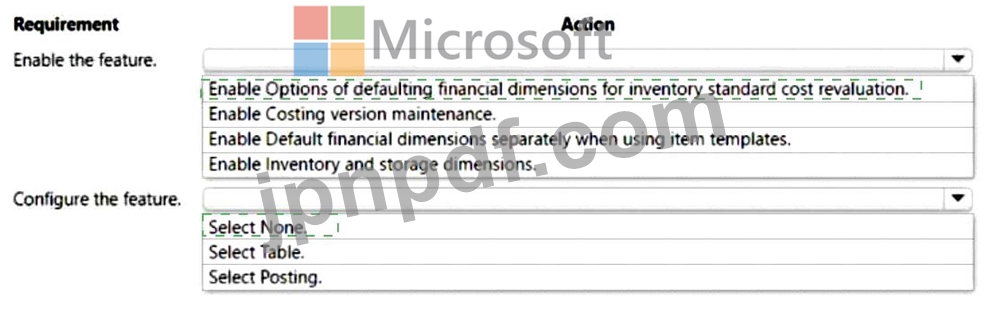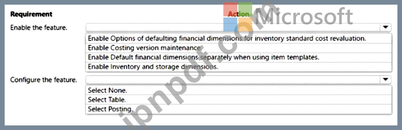 ある企業はDynamics 365 Supply Chain Managementを使用しています。この企業は事業単位の財務ディメンションを使用しています。このディメンションは品目に必須であり、取引に転記されます。