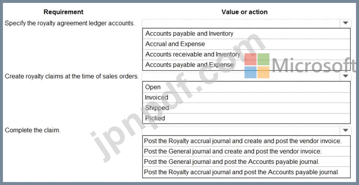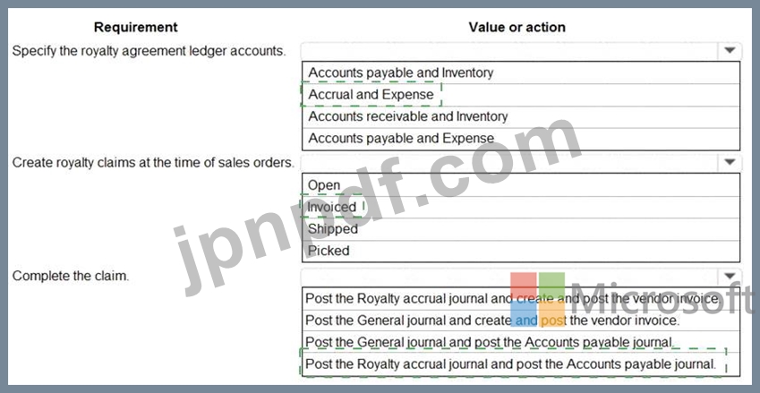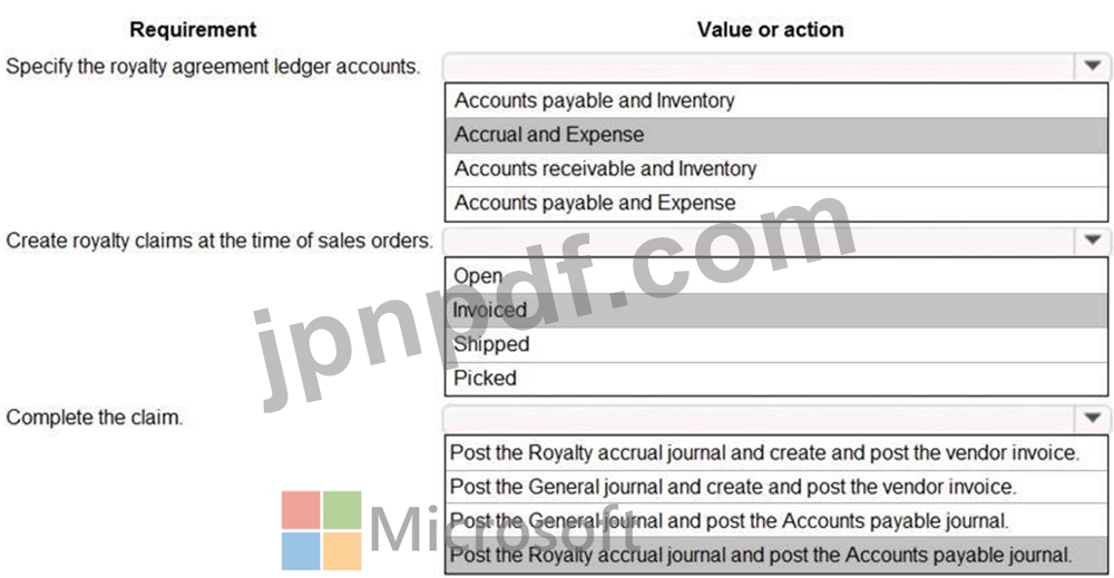 ロイヤリティ契約はどのように設定すればよいですか? 回答するには、回答エリアで適切なオプションを選択してください。