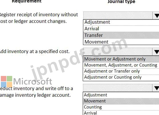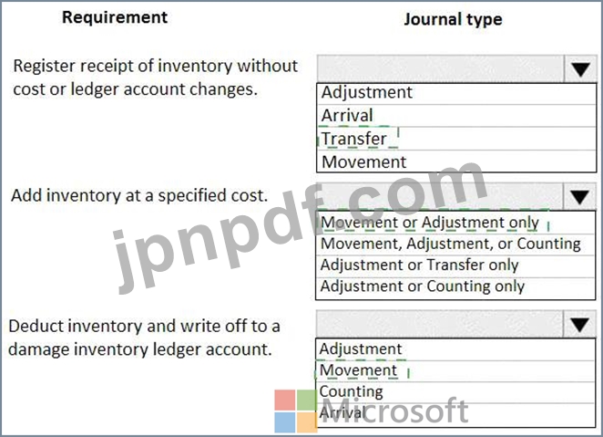 どのタイプのジャーナルを使用すべきですか? 回答するには、回答エリアで適切なオプションを選択してください。