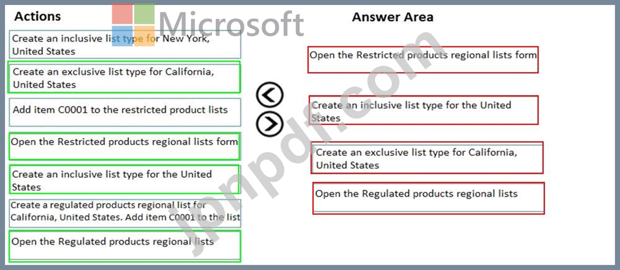 どの 4 つのアクションを順番に実行する必要がありますか? 回答するには、適切なアクションをアクション リストから回答領域に移動し、正しい順序に並べます。