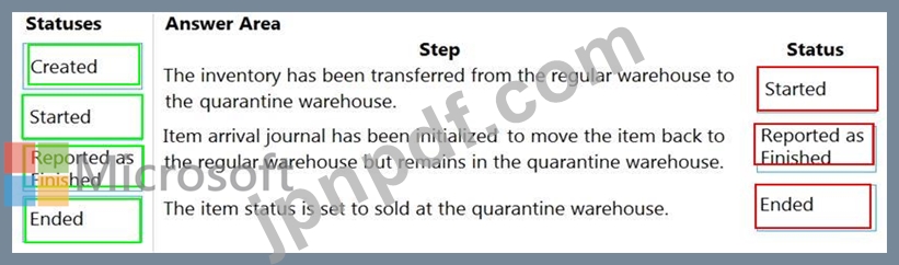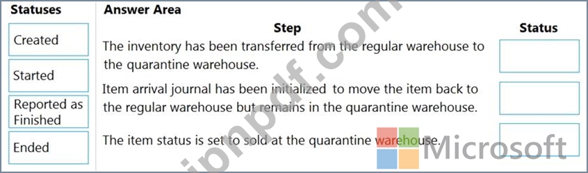 商品の所在地に基づいて、注文のステータスはどうなりますか? 回答するには、適切なステータスを正しいステップにドラッグしてください。各ステータスは、1回、複数回、または全く使用されない場合があります。コンテンツを表示するには、ペイン間の分割バーをドラッグするか、スクロールする必要がある場合があります。