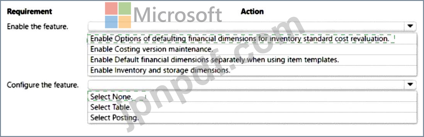 ある企業はDynamics 365 Supply Chain Managementを使用しています。この企業は事業単位の財務ディメンションを使用しています。このディメンションは品目に必須であり、取引に転記されます。