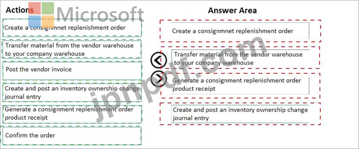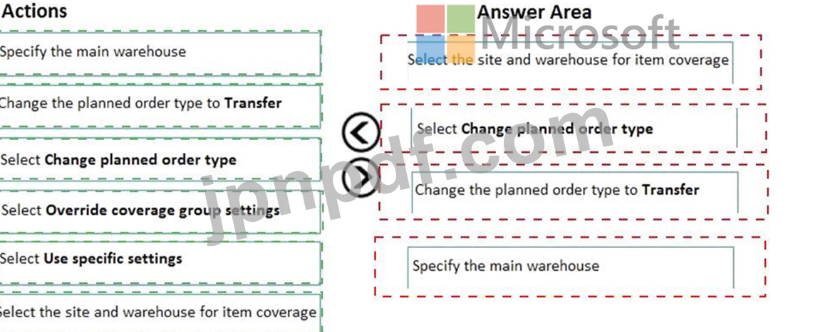 どの 4 つのアクションを順番に実行する必要がありますか? 回答するには、適切なアクションをアクション リストから回答領域に移動し、正しい順序に並べます。