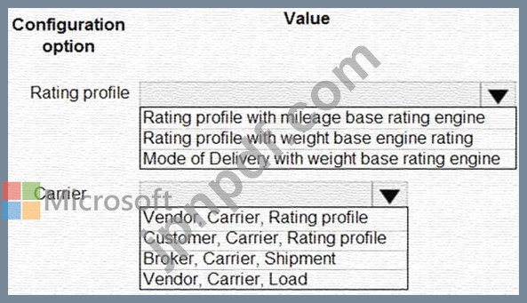 どの値を使用する必要がありますか? 回答するには、回答領域で適切なオプションを選択してください。