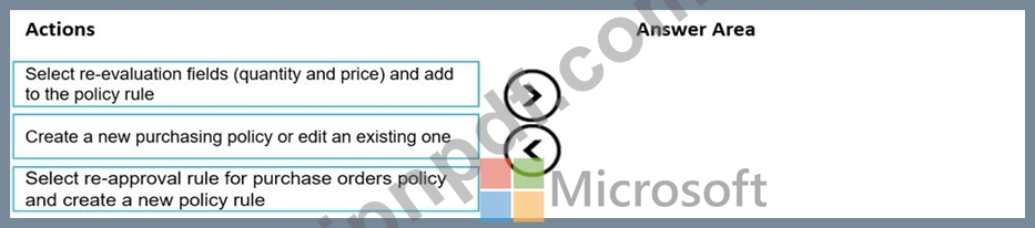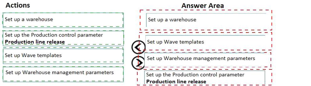 どの順序でアクションを実行すればよいですか? 回答するには、すべてのアクションをアクション リストから回答領域に移動し、正しい順序に並べます。