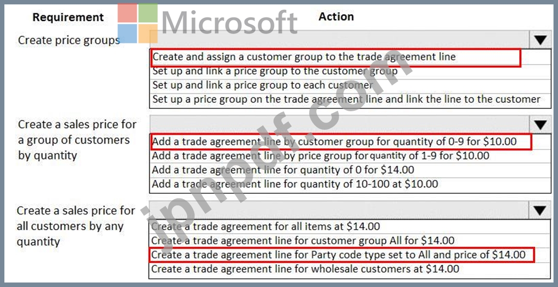 貿易契約の設定では、どのアクションを実行する必要がありますか? 回答するには、回答領域で適切なオプションを選択してください。