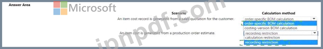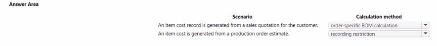シナリオに原価積上と販売価格計算が設定されていることを確認する必要があります。どのオプションを使用すべきでしょうか?回答するには、回答エリアで適切なオプションを選択してください。
