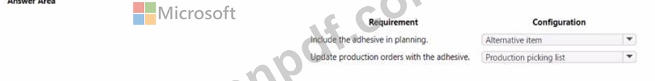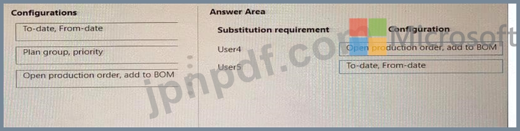各要件にはどの構成を使用する必要がありますか? 回答するには、回答領域で適切なオプションを選択してください。
