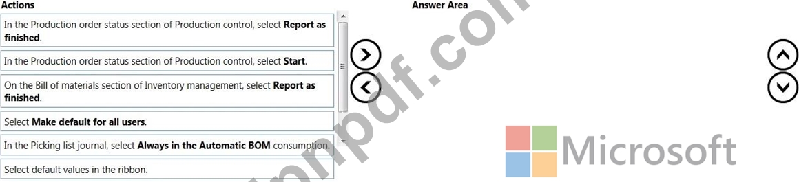 どの 4 つのアクションを順番に実行する必要がありますか? 回答するには、適切なアクションをアクション リストから回答領域に移動し、正しい順序に並べます。