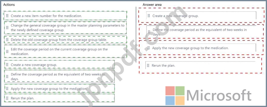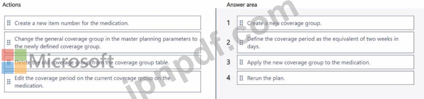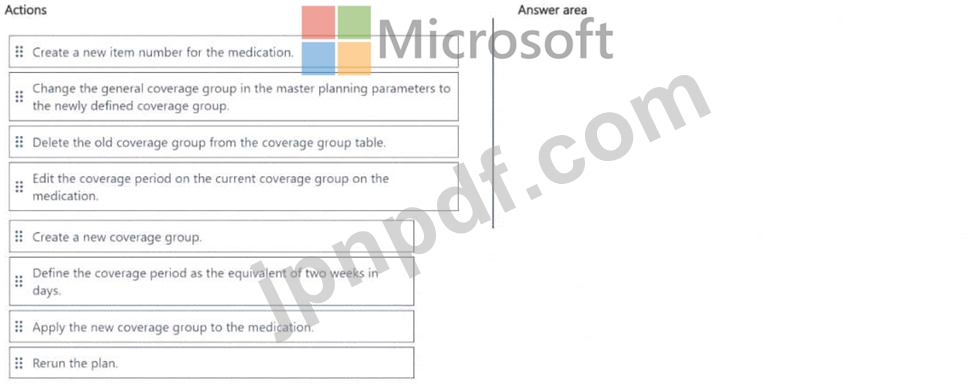どの 4 つのアクションを順番に実行する必要がありますか? 回答するには、適切なアクションをアクション リストから回答領域に移動し、正しい順序に並べます。