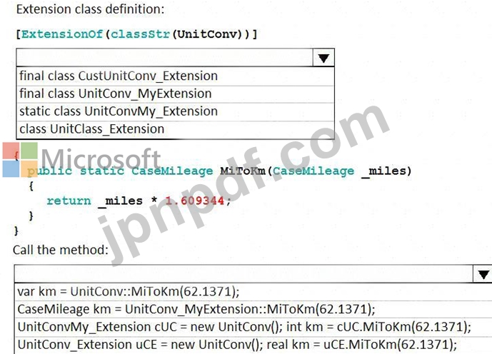 コードをどのように完成させ、メソッドを呼び出す必要がありますか?回答するには、回答エリアで適切なオプションを選択してください。