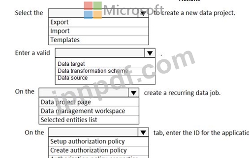 順番に実行する必要がある3つのアクションはどれですか?回答するには、適切なアクションをアクションのリストから回答領域に移動し、正しい順序に並べます。