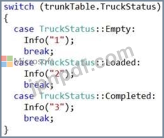 次のステータスを持つtruckStatusという名前の列挙があります。