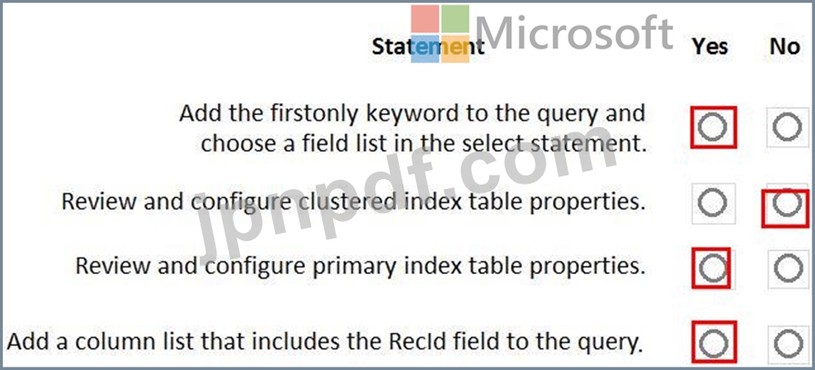 次の各ステートメントについて、ステートメントがtrueの場合は、[はい]を選択します。それ以外の場合は、[いいえ]を選択します。