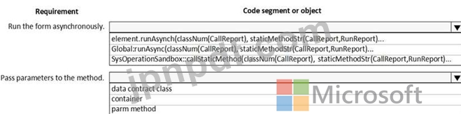 どのコードセグメントを使用する必要がありますか?回答するには、回答エリアで適切なオプションを選択してください。
