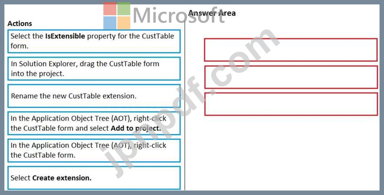 順番に実行する必要がある3つのアクションはどれですか?回答するには、適切なアクションをアクションのリストから回答領域に移動し、正しい順序に並べます。