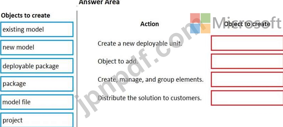 何を作成する必要がありますか?答えるには、適切なオブジェクトを正しいアクションにドラッグします。各要素は、1回使用することも、複数回使用することも、まったく使用しないこともできます。コンテンツを表示するには、ペイン間で分割バーをドラッグするか、スクロールする必要がある場合があります。